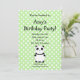5" x 7" invitation with cute panda green white polka dots pattern for a panda themed birthday party invite