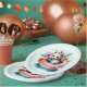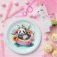 Paper plates with an adorable summery image. A watercolor design with a black and white panda sitting in a swimming ring in the water. Surrounded by pretty wildflowers. A totally chill bear.