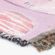 A quality printed throw has its advantages. This is a much finer weave throw than its loopier cousins, and though lighter, it is worth the investment for custom room accessorizing. The back is much prettier than the typical brown, and the fringe on the long sides very vivid, the selvage nicely done. Before photographing, I washed the throw in cold water, delicate, with a thicker woven throw the same size. On tumble dry low, this throw was dry in half the time as the other. This is a very practical quality if you use throws for furniture covers or to wrap up in frequently. The sleekness of the fabric makes it a great layer for accenting or protecting without the feeling of sitting on too much stuff. Perfect for napping or when you feel a light chill coming on. The color printing is beautiful and on this fabric, matched the design and color of my Photoshop image. This is an advantage for blending room fabrics and colors. The fringe on the short sides prints the colors from the design image and therefore varies from the side fringe. I streaked a white fractal line through the plaid pattern to give the illusion of weaving. This printed as crisp as an illusory thread, and put some white in the short side fringe, showing another advantage of print vs loomed- for artistic purposes, line lines, detail, and color integrity can be planned and preserved. My loomed throws have color limitations and more of a needlepoint texture. Print throws reproduce an exact image. The throw felt a little stiff straight out of the package, but this went away in the first delicate wash. Of course I searched the wash water for ink or bleeding and there was none.