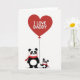This greeting card shows a big red heart-shaped balloon floating above two black-and-white pandas on a white background. The smaller panda stands in front, holding a thin black string that leads up to the balloon, while the larger panda stands close by like a caring parent. Both pandas wear red scarves, and their cheeks have a soft pink blush that makes them look shy and happy. The balloon has the words “I LOVE DADDY” in white, simple uppercase letters placed right in the center of the heart. With so much open space around them, your attention goes straight to the sweet moment between the two characters. It feels meaningful because it says “I love you” in a direct way, while the pandas’ gentle expressions add warmth and closeness. It’s a lovely choice for a child to give to a dad, or for anyone who wants to show family love on Valentine’s Day 🥰❤️.