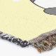 A quality printed throw has its advantages. This is a much finer weave throw than its loopier cousins, and though lighter, it is worth the investment for custom room accessorizing. The back is much prettier than the typical brown, and the fringe on the long sides very vivid, the selvage nicely done. Before photographing, I washed the throw in cold water, delicate, with a thicker woven throw the same size. On tumble dry low, this throw was dry in half the time as the other. This is a very practical quality if you use throws for furniture covers or to wrap up in frequently. The sleekness of the fabric makes it a great layer for accenting or protecting without the feeling of sitting on too much stuff. Perfect for napping or when you feel a light chill coming on. The color printing is beautiful and on this fabric, matched the design and color of my Photoshop image. This is an advantage for blending room fabrics and colors. The fringe on the short sides prints the colors from the design image and therefore varies from the side fringe. I streaked a white fractal line through the plaid pattern to give the illusion of weaving. This printed as crisp as an illusory thread, and put some white in the short side fringe, showing another advantage of print vs loomed- for artistic purposes, line lines, detail, and color integrity can be planned and preserved. My loomed throws have color limitations and more of a needlepoint texture. Print throws reproduce an exact image. The throw felt a little stiff straight out of the package, but this went away in the first delicate wash. Of course I searched the wash water for ink or bleeding and there was none.