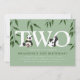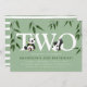 Step into the enchanting world of this adorable contemporary kids 2nd birthday party invite. Featuring two playful panda bears amidst watercolor leaves, this invitation is perfect. Crafted on an eucalyptus green background, it frames the word 'TWO' in an inviting white. This template is not just easy to customise and create a memorable event.