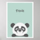 Children's poster of a cute panda on an emerald green background. The perfect print to add in the kids' room or as a funny decoration in your home interior.