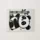 Puzzle features adorable panda reaching towards a bamboo plant. A cute cartoon-style artwork of the vegetarian bear!