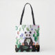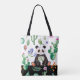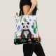 Cute Panda With Green Bird & Cactus Pattern Tote Bag