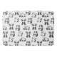 This cute, black and white gender neutral pattern features doodle style pandas in various poses on white background.