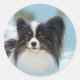 Cute Papillon Toy Spaniel Dog at the Dock Classic Round Sticker