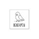 Simple illustration of a cute cartoon parakeet bird sitting with its wings closed. Customise with your own name.