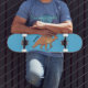 Cute parasaurolophus dinosaur cartoon illustration skateboard