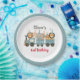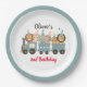 Celebrate any occasion with this adorable personalised paper plate featuring a delightful safari train! A cast of whimsical safari animals, each sporting a festive party hat, chugs along on a charming train. These plates are perfect for adding a touch of fun and personalisation to your next birthday party, baby shower, or any gathering.