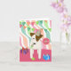 This whimsical birthday card for young girls features a cartoon Jack Russell ready to have some birthday party fun, wearing a colourful wavy striped birthday party hat with a tassel and blowing on a party horn, standing in front of colourful flag bunting with text that reads, "Happy Birthday" - this adorable dog has two birthday gifts sitting at her feet--she's also brought her tennis ball to the party, though it's not a gift...she'd like you to throw it for her ;) - an angled wavy stripes background of faded teal, lime, pink and orange coordinates with the party hat and party horn - child's name and age on front and the inside text can be customised - Jack Russell Terrier with Head Tilt design © katz_d_zynes 2019