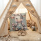 I LOVE this pillow! It sleeps with me every night; and yes, it gets and gives lots of hugs. I know I said it would be good for a Baby Shower up there, but it's good for little old ladies too! But I can truly see a child growing up with it and having a friend for life. It would get passed down from generation to generation. Truly a classic! This pillow is HUGE! I took a picture of it propped up in front of four queen-size pillows, and it covered them all. The artwork was even more beautiful than the photo indicates, both front and back. I was also surprised to find that these pillows are made by single mothers living in poverty, under the auspices of AMERICAN MOJO: Helping America Gets Its Mojo Back. That delighted me and made me love the pillow even more.