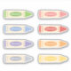 This design features cute pastel crayons with personalised name in white modern sans serif font style.