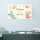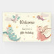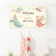 Cute pastel birthday party welcome banner featuring playful dragon, star and cloud illustrations paired with fun, stylish typography on different colour backgrounds. You can find more matching items from this collection in my store.