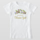 This cute t-shirt is designed as a gift or favour for your wedding flower girl. The design features a cluster of pastel spring flowers including pink roses and white calla lilies with gold script reading "Flower Girl" and a place for her name. Perfect way to thank her for being a part of your bridal party.