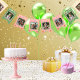 This cute pastel collection of 16 bunting flags are on a 6' long string. The 1st and last (16th) matching flags have a banner on which you personalise your birthday girl's name and age. The 2nd and 14th are matching complimentary scenes, and finally, the 3rd - 14th flags of buttercream yellow, pink, and muted green contain templates wherein you can upload favourite photos of family moments, photos of your little girl's milestones, and photos of the birthday girl's beloved animals, favourite people, and places.