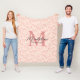 Cute Pastel Pink Heart Pattern Script Monogram Fleece Blanket