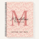 Cute Pastel Pink Heart Pattern Script Monogram Notebook