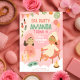 This charming spa-themed party design is perfect for a cosy celebration full of self-care and giggles! Adorned with sweet illustrations of girls in bathrobes, face masks, balloons, and calming decor – it sets the mood for a delightful get-together. Easily editable and great for print or digital sharing.
