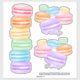 This fun sticker sheet features two randomly arranged clusters of 6 scrummy looking macarons (lilac, pink, orange, blue, yellow & green) with white filling plus a "wobbly" stack of macarons with the same colours - personalise with her name - by katz_d_zynes