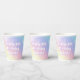Celebrate your little girl's birthday with these pretty pastel rainbow sparkle party paper cups that feature beautiful white letters with purple shadow for your child's name. This magical decor exemplifies the enchantment of childhood.