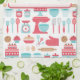 Cute pastel retro kitchen utensils pattern tea towel