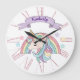 Cute Pastel Unicorn & Sparkly Rainbow Custom Name Large Clock