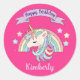 Cute Pastel Unicorn & Sparkly Rainbow on Hot Pink Classic Round Sticker
