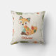 This personalised throw pillow features a cute, whimsical fox created in a patchwork style. The fox is designed with a mix of colourful, patterned fabrics, including polka dots, stripes, and leafy textures.