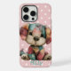 Cute Patchwork Puppy | Personalised Pink Polka Dot iPhone Case