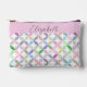 This cute cheater quilt fabric patchwork quilting themed accessory or project bag with personalizable text is perfect for a gift for a quilter to use for scissors, thread, and other notions. It would be great as a hobby or crating project bag. It features a star pattern in assorted pastel colours with text that you can customise with your own name. The template is customisable in the listing editor.