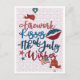 Anyone would love to receive this cute, patriotic red, white, and blue fireworks, kisses, 4th of July wishes postcard!