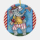 CUTE PATRIOTIC ELEPHANT WAVING AMERICAN FLAG CERAMIC TREE DECORATION