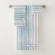 Cute Pattern Colourful Stripes Pink Blue Monogram Bath Towel Set
