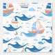 Cute Pattern of Boats In Waves, Clouds and Whales Wallpaper
