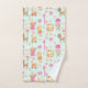 Towel set with a whimsical pattern featuring a collection of delightful children's toys and animals.
