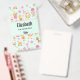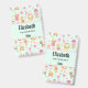 Personalised name badge with a whimsical pattern featuring a collection of delightful children's toys and animals.
