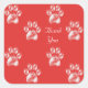Cute Paw Pattern on Red Thank You Square Sticker