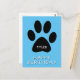 Cute Paw Print Blue Happy birthday Postcard. This birthday postcard for children features a black dog paw print on a blue background. Personalise the postcard with your name and you can also change the Happy birthday text.