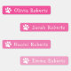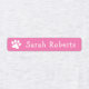 Cute clothing labels in shades of pink featuring a white paw print and your name or other custom text. You can change paw print and background colours with the customisation tool.