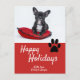 Cute Paw Red Script Dog Photo Happy Holiday Postcard