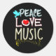 Cute Peace Love Music Hippie Hipster Festival Classic Round Sticker