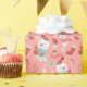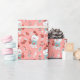 Cute cartoon snowman wrapping paper personalised with a girl's name or any custom text. Great gift wrap for Christmas or the Holidays, featuring winter illustrations and animals with a peach or soft pink background.