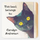 Cute Peeking Cat Design Bookplate Sticker with customisable text.