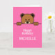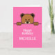 Cute Peeping Bear Cartoon Happy Birthday Pink Card