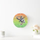 The clock did not take as long to arrive as I thought it might and was extremely well packaged. I didn't do the measurements so I didn't realize it is a little smaller than the average clock but that does not matter (just make sure you check if that's important to you).It is really nifty! It seems very solid and well made not flimsy at all. It has been going well and has kept good time in its few weeks on my wall. Nice product. Gets noticed too! Nicer in real life than the picture but true to the picture