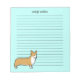 Corgi Lover's Notes. Text can be personalised. Cute lined paper notepad for work, to-do lists, school, and grocery lists. Makes a cool little gift for a friend for family member who loves Pembroke Welsh Corgis. Available in more paper colours.