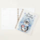 A charming winter illustration of an adorable little penguin wearing a blue striped hat and scarf, bringing a cosy and festive vibe. The soft snowflakes and gentle blue tones in the background create a magical winter atmosphere. Perfect for Christmas cards, posters, stickers, and seasonal crafts!