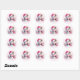 Create unique pink Christmas stickers for mailing seals or favours with a girly design that features a cute penguin in a pink Santa hat and scarf, sitting with a small snowman among festive greenery and ornaments.