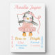Personalised Baby Girl Birth Stats Record featuring a baby Penguin Ballerina in a pretty pink dress with custom text, personalised name, and birth information in different pretty coloured fonts. Perfect as a Baby shower gift or a Welcome new Baby Gift. Customise by adding the baby's birth info such as name, date, time, weight and length to make this a very special keepsake for new parents.